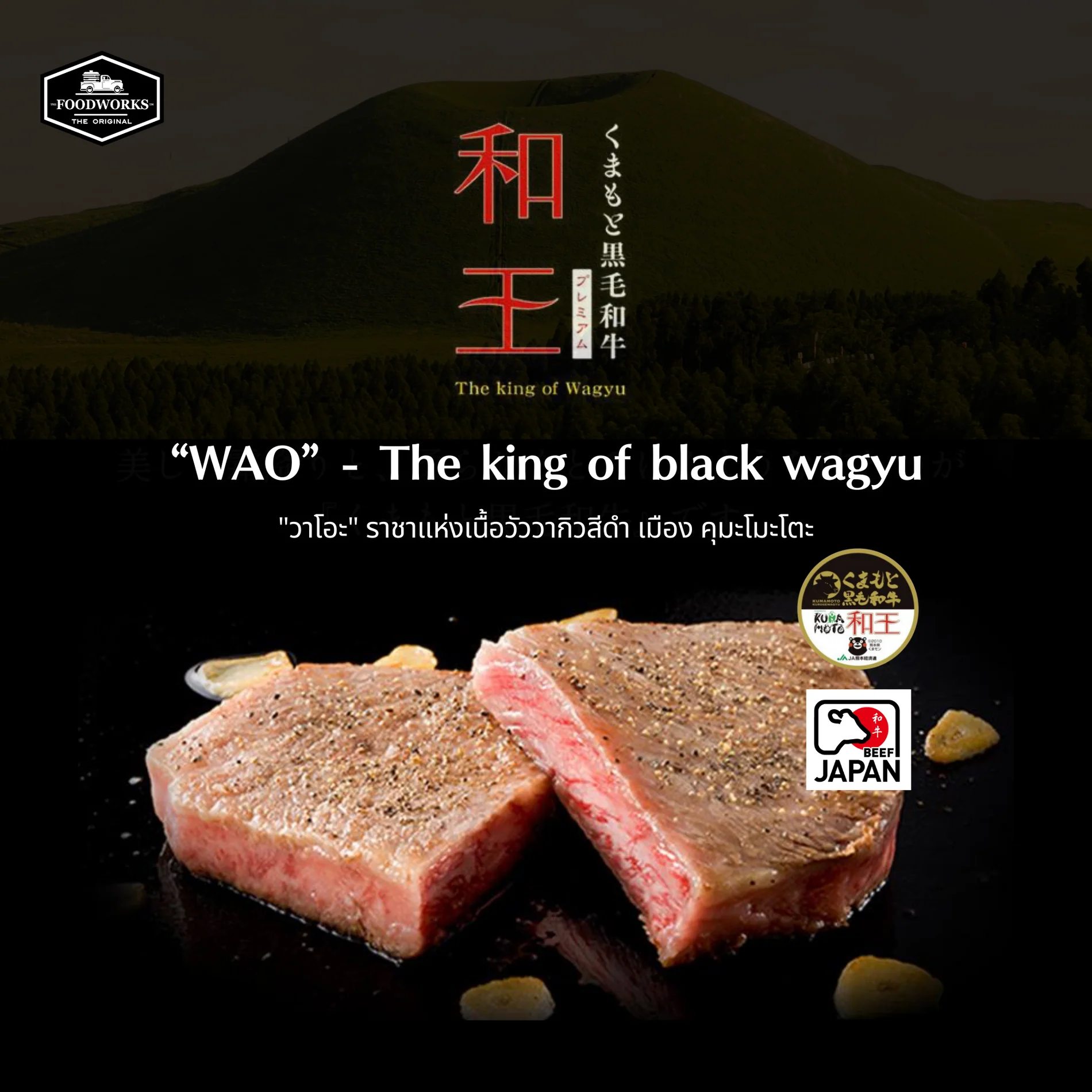 วันนี้เราขอแนะนำคุณให้รู้จักกับวากิวรสชาติดีจากจังหวัดคุมะโมะโตะ ที่ขึ้นชื่อว่าเป็นเมืองที่มีแหล่งน้ำที่บริสุทธิ์ที่สุดในญี่ปุ่นกันค่ะ กับเนื้อ "วาโอะ" ราชาแห่งเนื้อวัววากิวสีดำ เมือง คุมะโมะโตะ